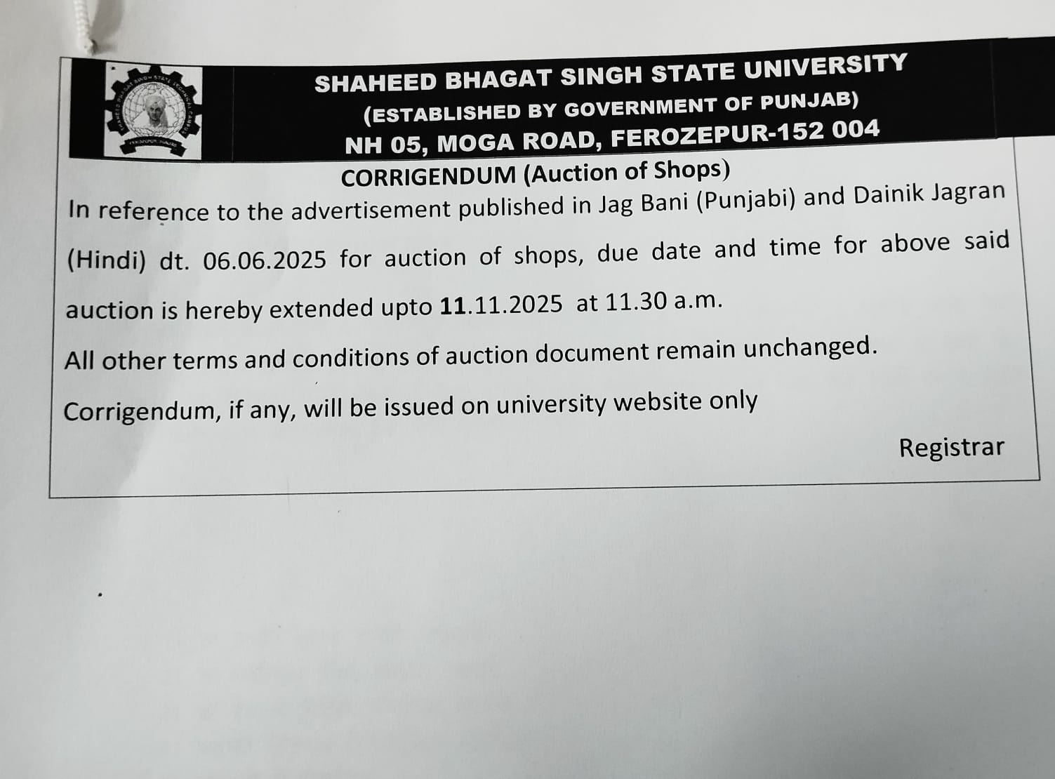 CORRIGENDUM FOR AUCTION OF SHOPS